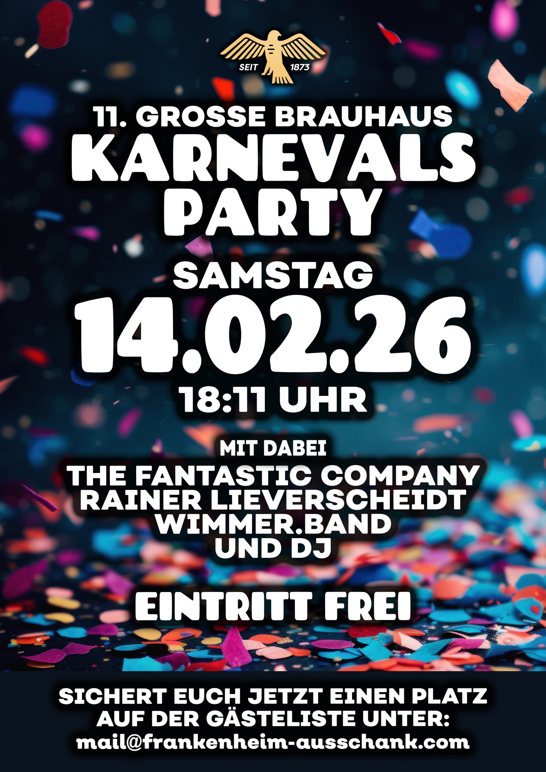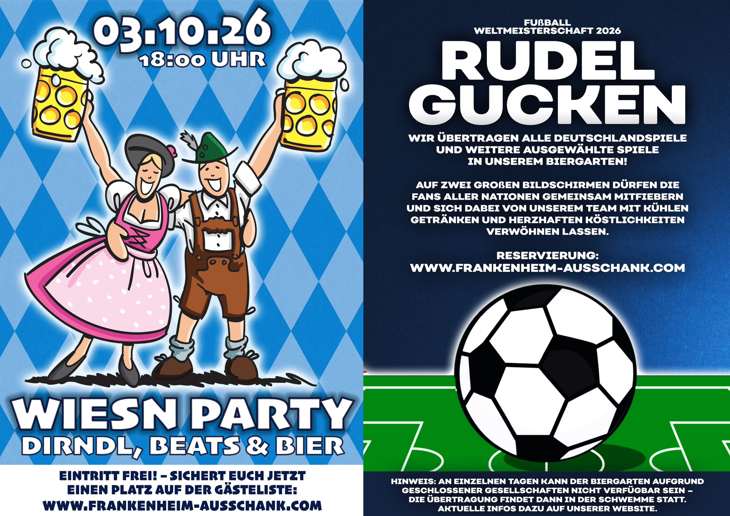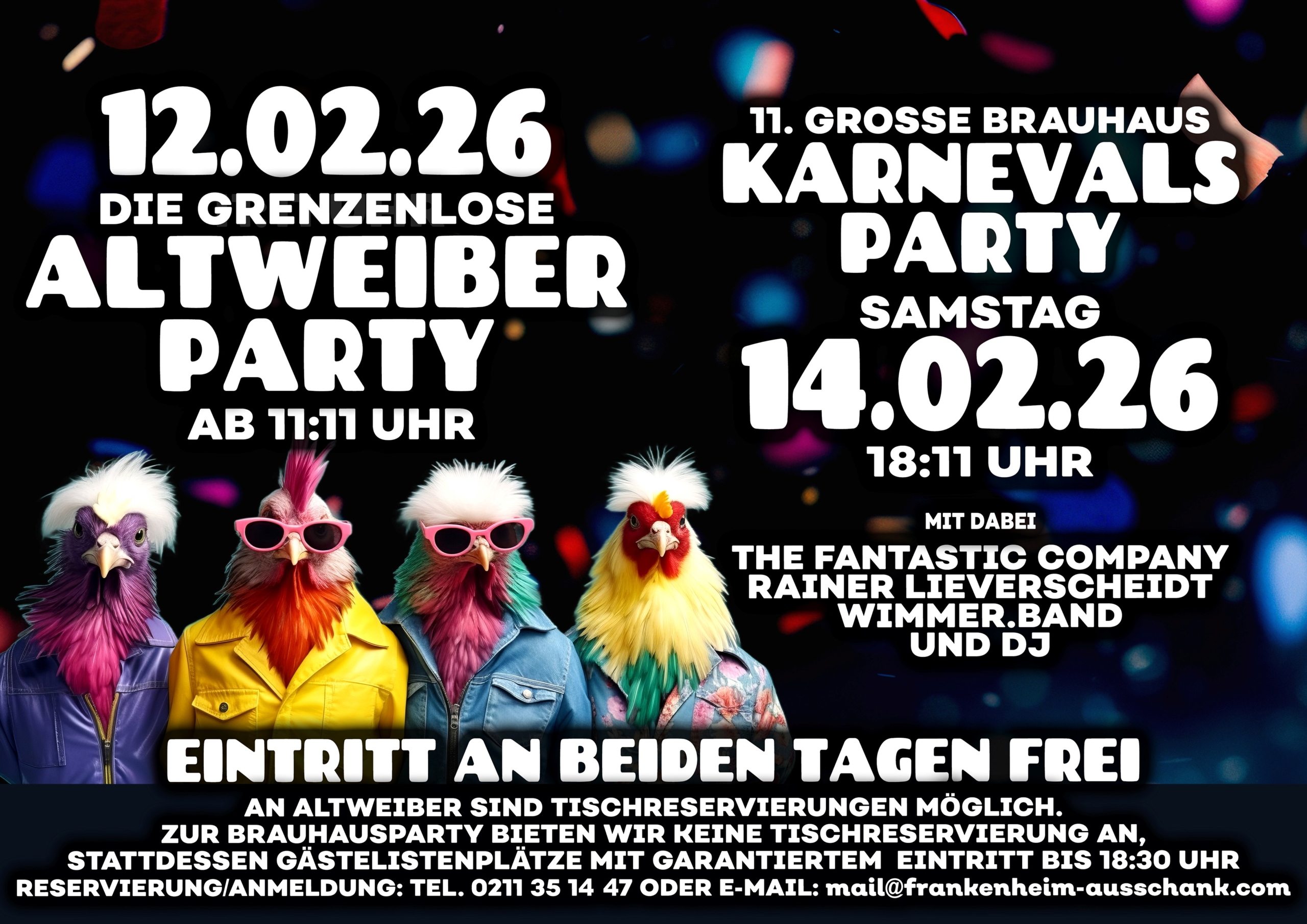 Reservierungsanfragen unter: 0211 35 14 47 oder mail@frankenheim-ausschank.com